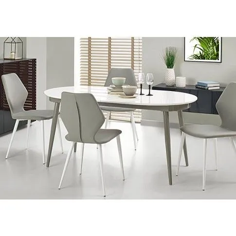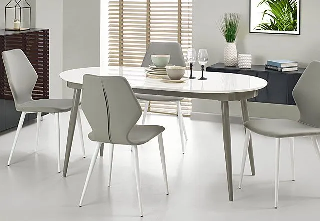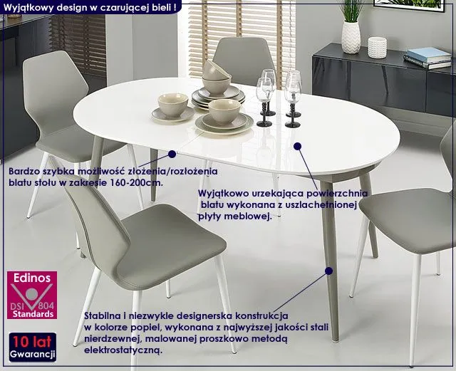 - Modny kolor blatu: Biały Połysk, Kolor konstrukcji: Popiel. Sprawdź pozostałe okrągłe stoły rozkładane z naszej oferty.