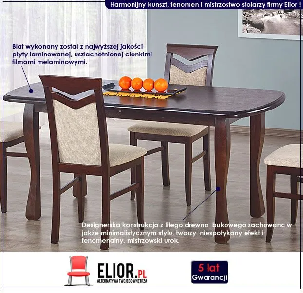 Naturalne drewno bukowe i niebanalny design, zachowany w niezwykłej formie oraz wyjątkowym wykonaniu producenta - firmy Elior! Pokaż Swój indywidualizm i wrażliwość na szlachetne kształty. Odrzuć tandetną modę z najniższych półek i delektuj się prawdziwą formą piękna! Sprawdź ofertę firmy Elior i zobacz pokaz najnowszego stołu Hobart. Prawdziwy i solidny mebel, wykonany z naturalnego drewna bukowego prezentuje się naprawdę imponująco! Niecodzienny i urzekający design, świetnie wkomponuje się w każde urządzone z pasją pomieszczenie. Wyobraź sobie już dziś, jak efektownie prezentowałby się z Twoim wnętrzu!
