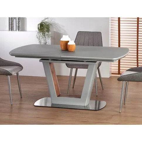 Jedyny w swoim rodzaju, jakże nietypowo prezentujący się i pełen designerskiej klasy stół Ilmila to propozycja, który zachwyca nie tylko pięknym stylem, lecz także starannością wykonania. Modny stół Ilmila to z cała pewnością unikat pod względem kolorytsycznym. Stół został wykonany w ciekawym kolorze jasny popiel. Dodano do niego szlachetne elementy w kolorze orzech. Całość to zatem szykowny, ale i zaskakujące stylistyczne projekt. Tak dostojna, a zarazem modernistyczna propozycja może zdobić różnorodnie zaprojektowane wnętrza domowe i komercyjne.