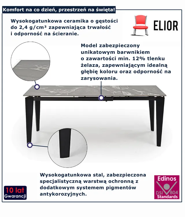 Dotyczy: Rozkładany biały stół z blatem imitującym marmur - Drix