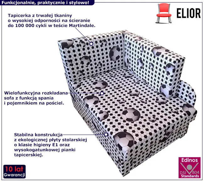 Rozkładany tapczan z pojemnikiem w motyw piłki nożnej - Paster 6X
