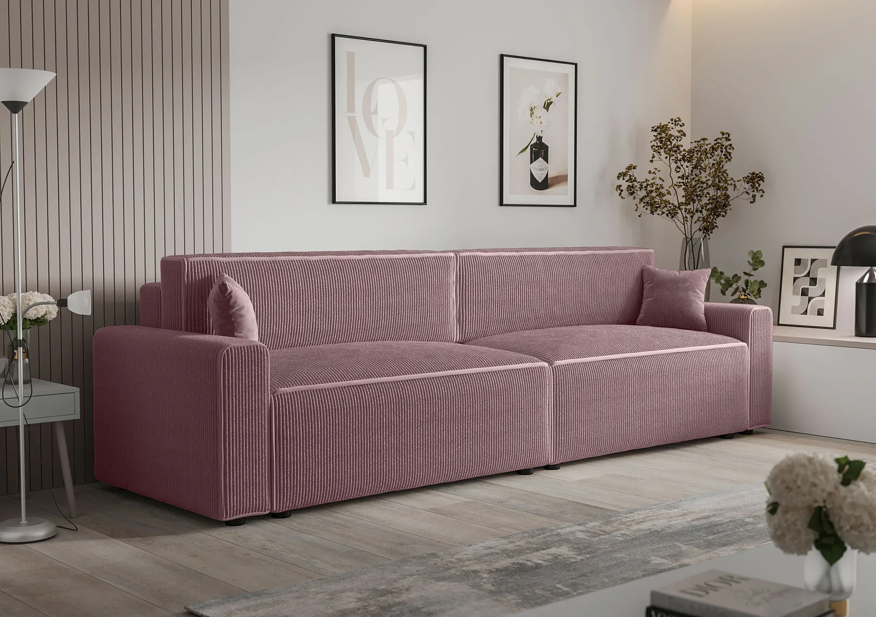 Tapicerowana rozkładana sofa w kolorze różowym Almoria