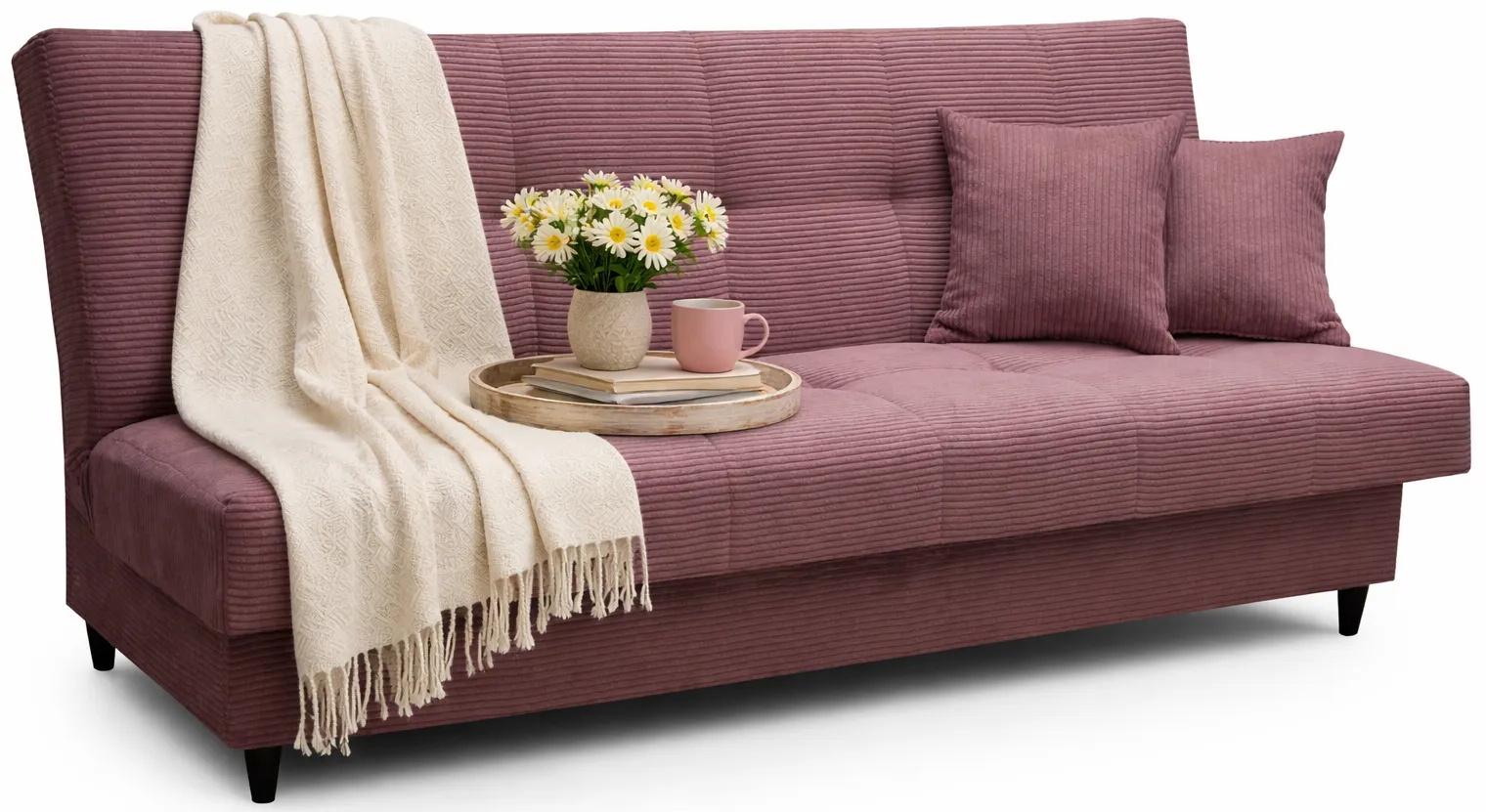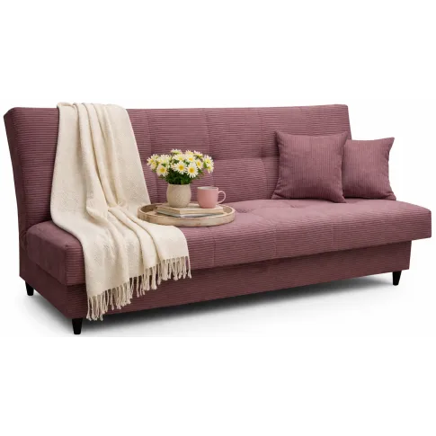 Różowa sztruksowa wersalka rozkładana do salonu - Garitia