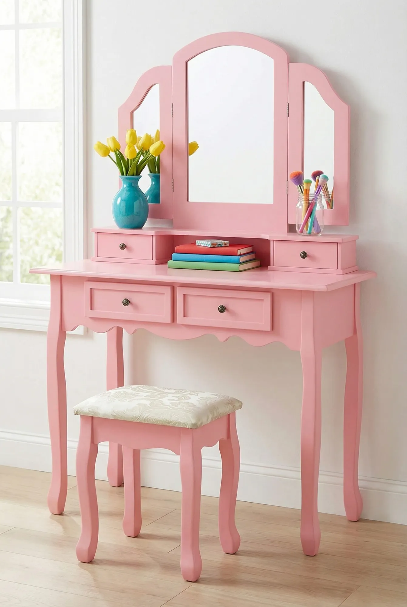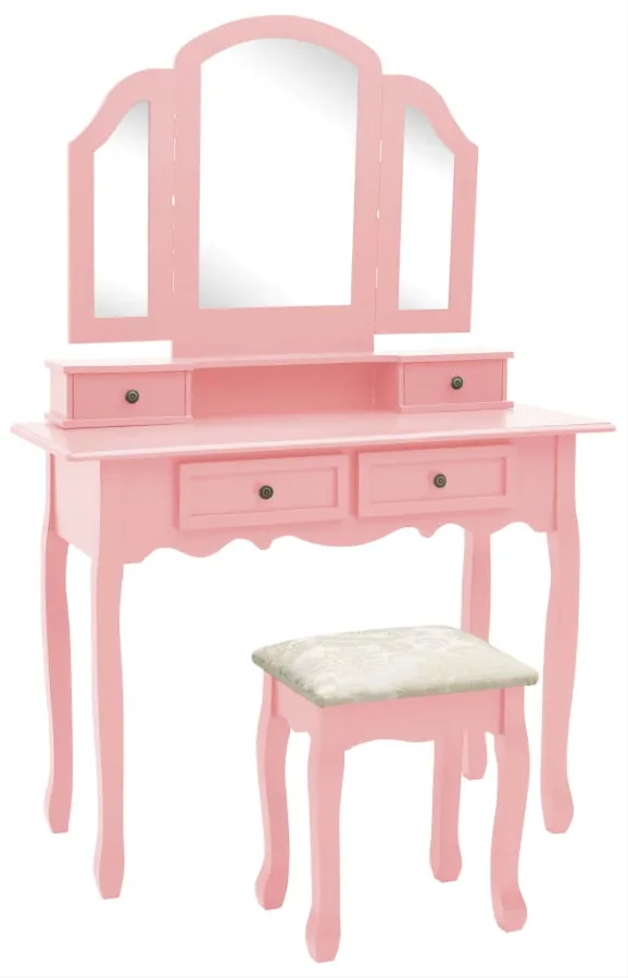 Różowa toaletka dla nastolatki ze stołkiem - Amber