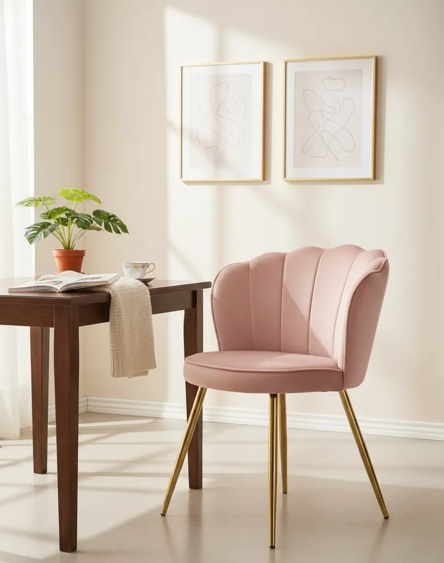 Dotyczy: Szare welurowe krzesło muszelka na złotych nogach - Larry