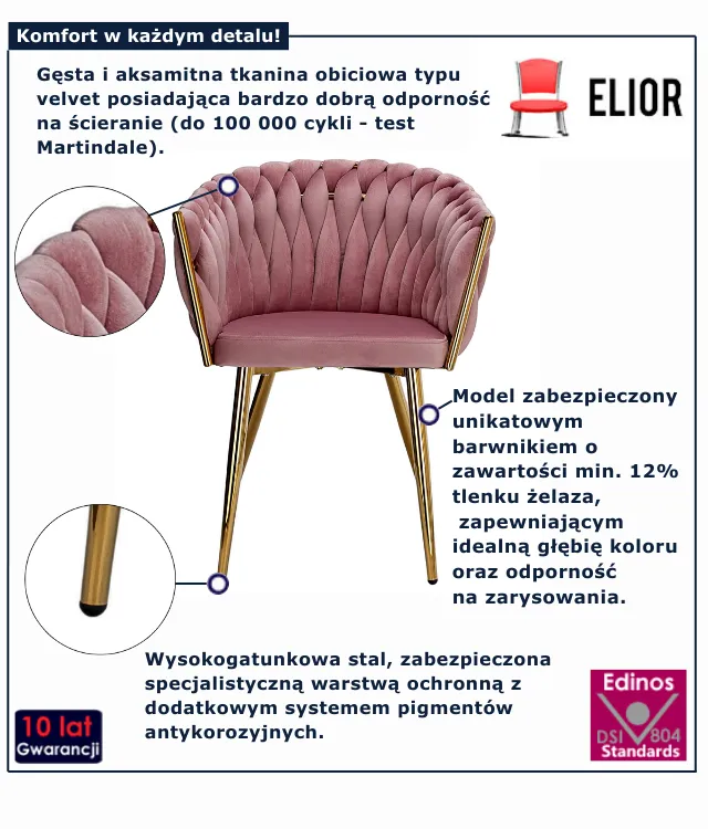 Twój dom zasługuje na meble, które łączą styl z funkcjonalnością. Krzesło Tisse 4X marki Elior to połączenie elegancji i wygody – jego pleciony wzór dodaje wnętrzu charakteru, a wyprofilowane siedzisko zapewnia komfort podczas codziennego użytkowania. To nie tylko miejsce do siedzenia, ale też element dekoracyjny, który ożywi przestrzeń. Czy nie chcesz, aby Twój salon lub jadalnia zyskały odrobinę luksusu? To krzesło sprawi, że nawet zwykła kolacja zamieni się w eleganckie spotkanie.