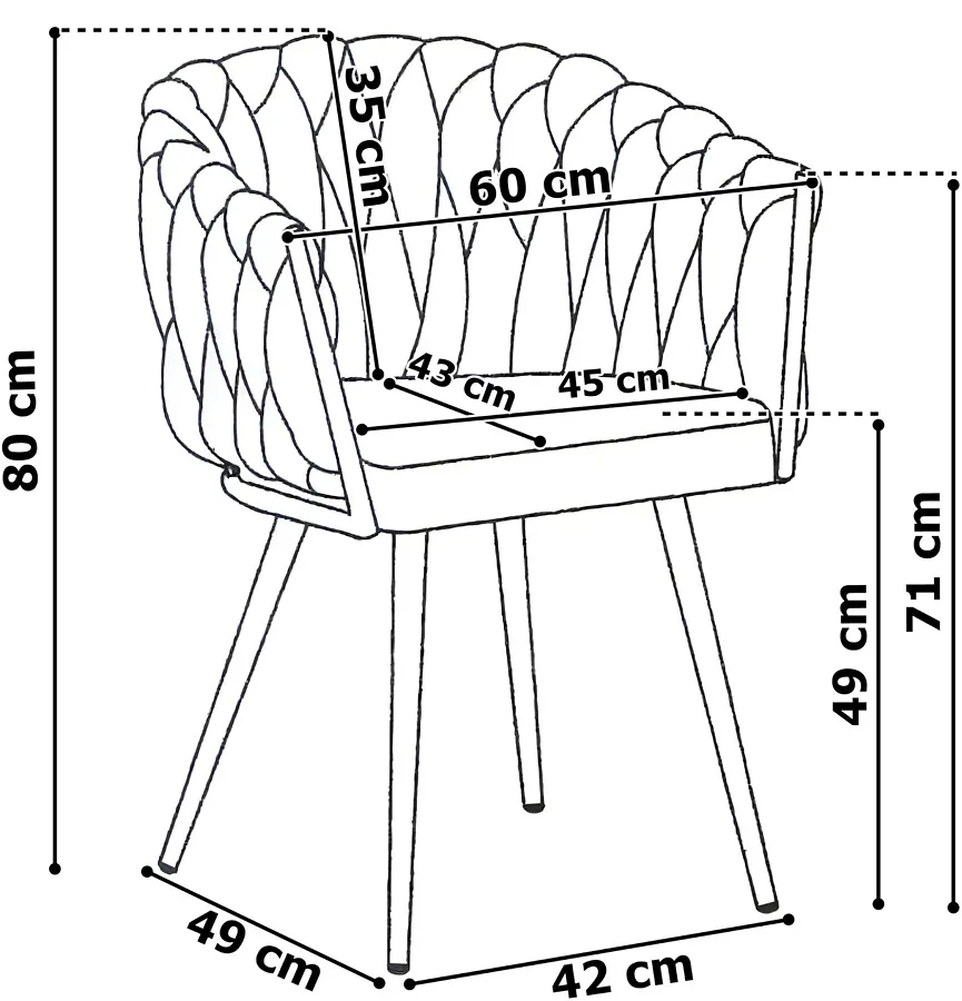 • Plecione oparcie – oryginalny wzór, który nadaje meblowi wyjątkowego charakteru.