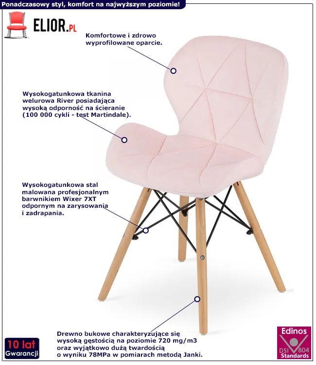 Dotyczy: Beżowe krzesło aksamitne pikowane do stołu - Inez 4X