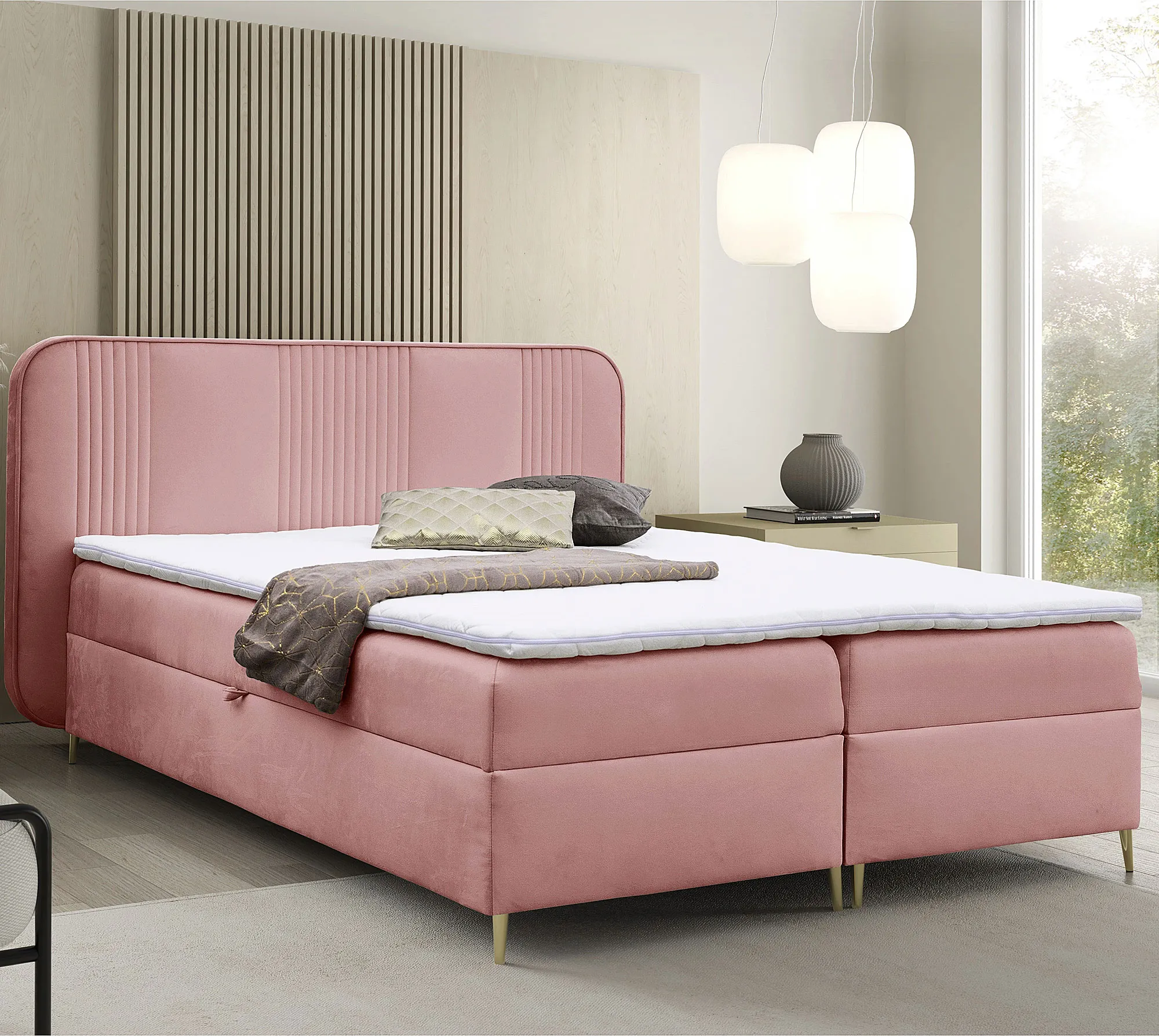 Różowe łóżko kontynentalne tapicerowane welurem 4 rozmiary - Averell