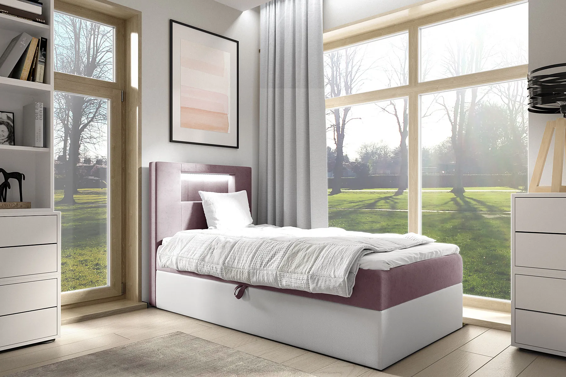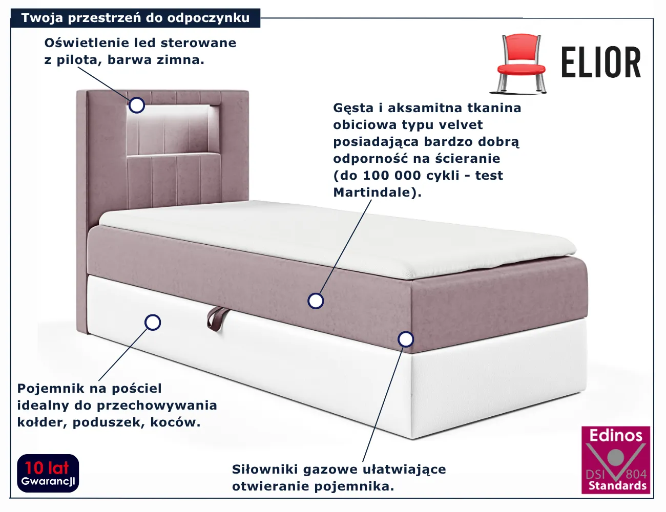 Różowe łóżko pojedyncze z oświetleniem LED 3 rozmiary - Fenarro