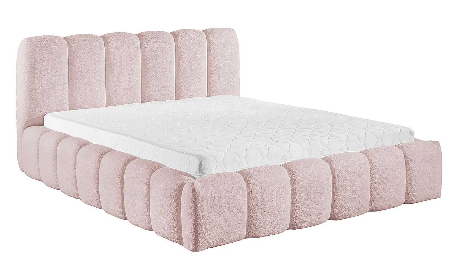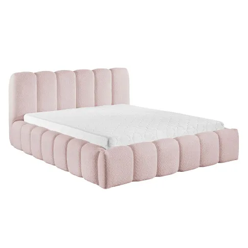 Różowe łóżko chmurka tapicerowane tkaniną boucle Nuviano