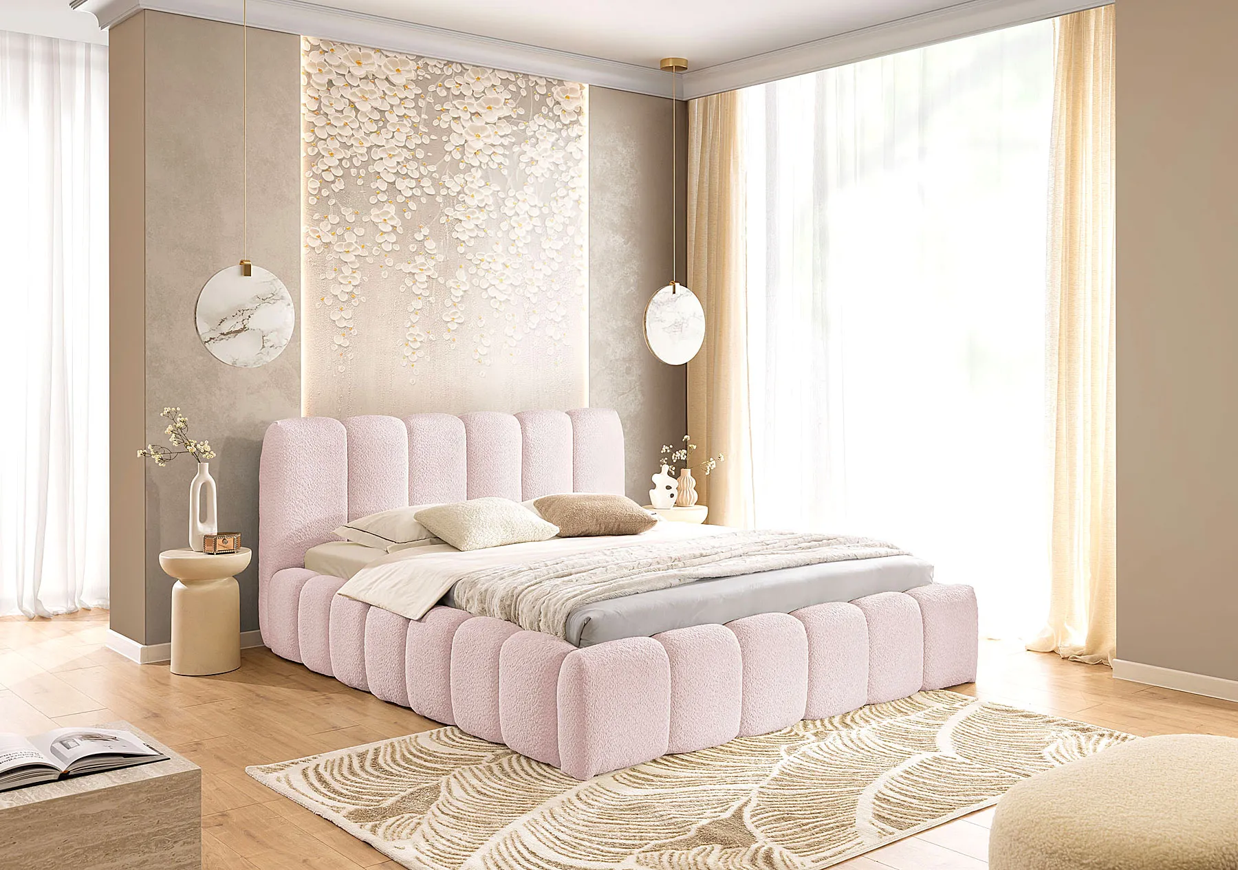 Aranżacja wnętrza z różowym łóżkiem Nuviano