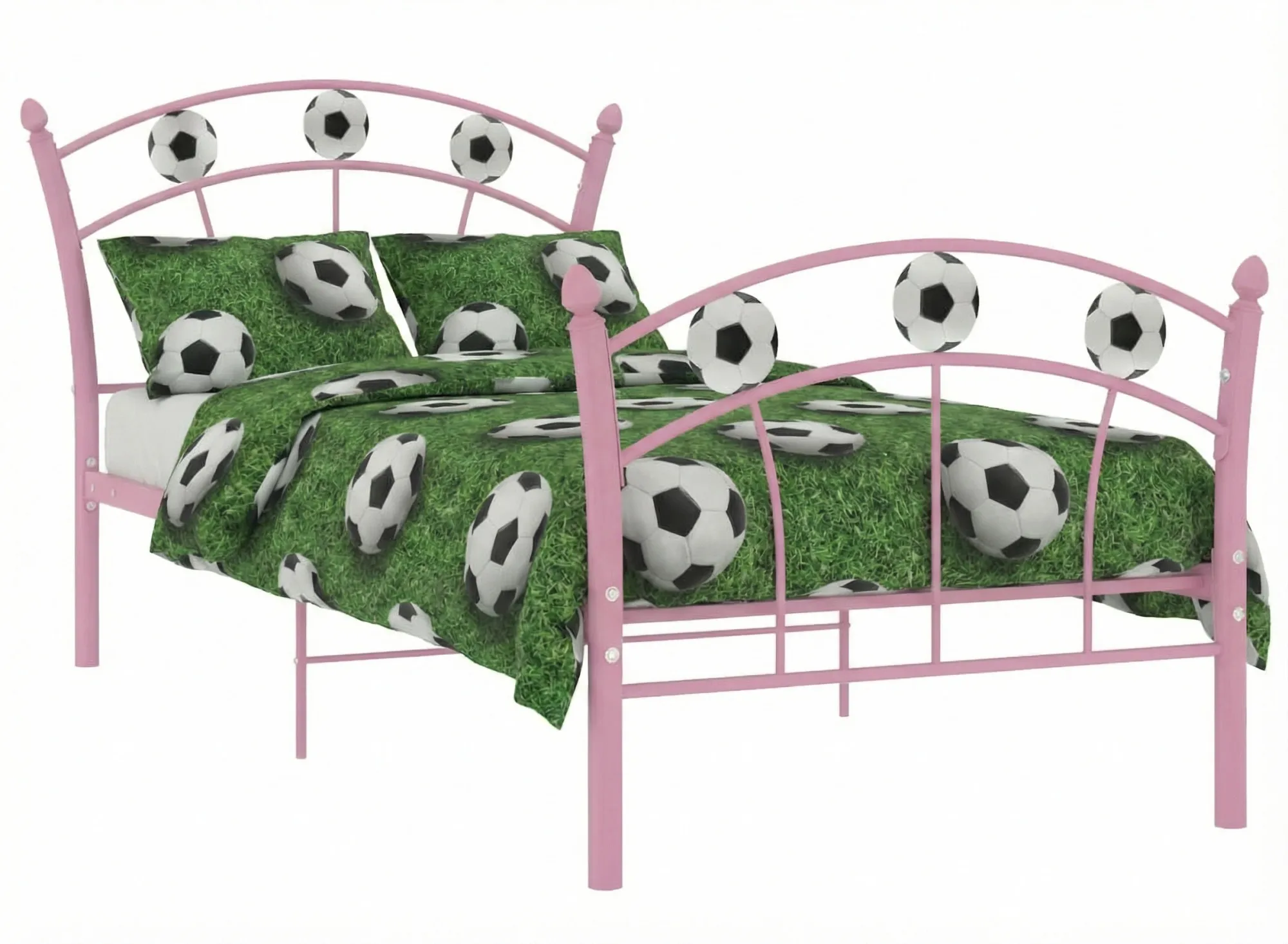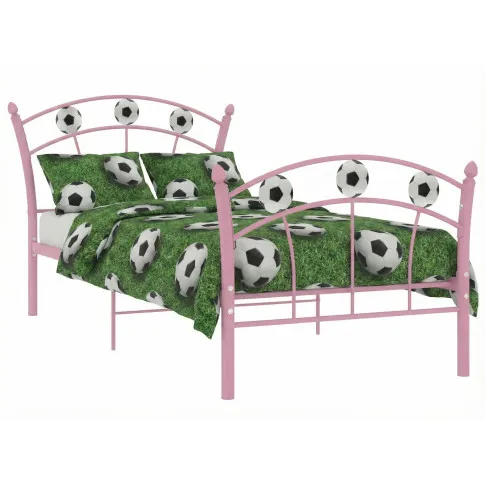 Różowe metalowe łóżko dla dziewczynki z motywem piłki 90x200 cm - Dizzel
