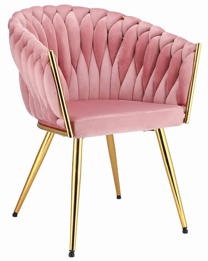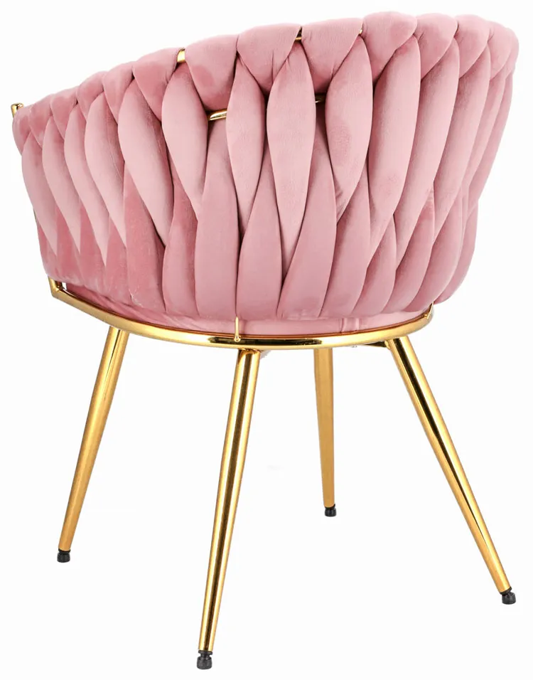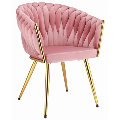 Różowe plecione krzesło glamour na złotych nogach - Azrel