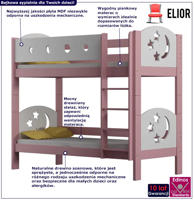 - Modny kolor: różowy. W naszej ofercie posiadamy także inne łóżka piętrowe. Kliknij i stwórz swój wyjątkowy zestaw mebli.