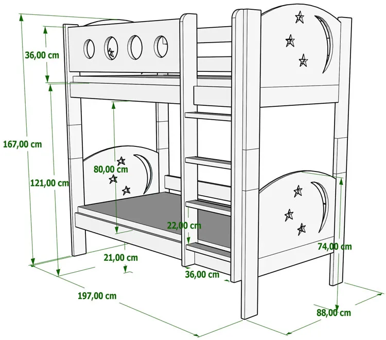 Dotyczy: Zielone dziecięce łóżko piętrowe z zagłówkami w gwiazdki - Iwaria 3X 190x80 cm