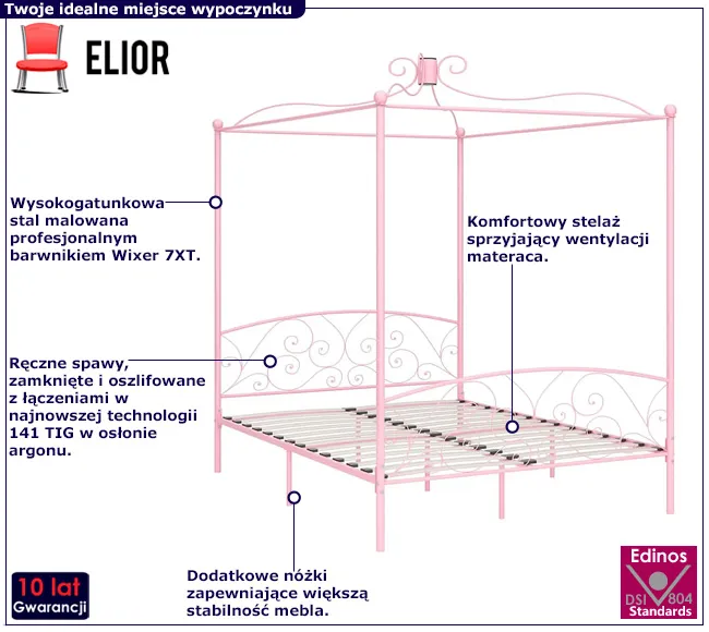 Dotyczy: Łóżko metalowe z baldachimem w kolorze białym 180x200 cm - Ifrexi