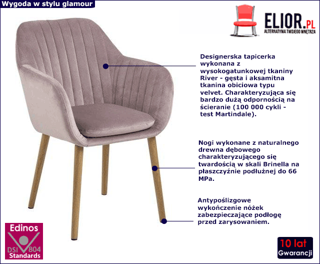 - Kolor: różowa tapicerka i dębowe nóżki. Kliknij w link i zobacz też inne krzesła tapicerowane w sklepie Edinos.pl - na pewno znajdziesz coś dla siebie!