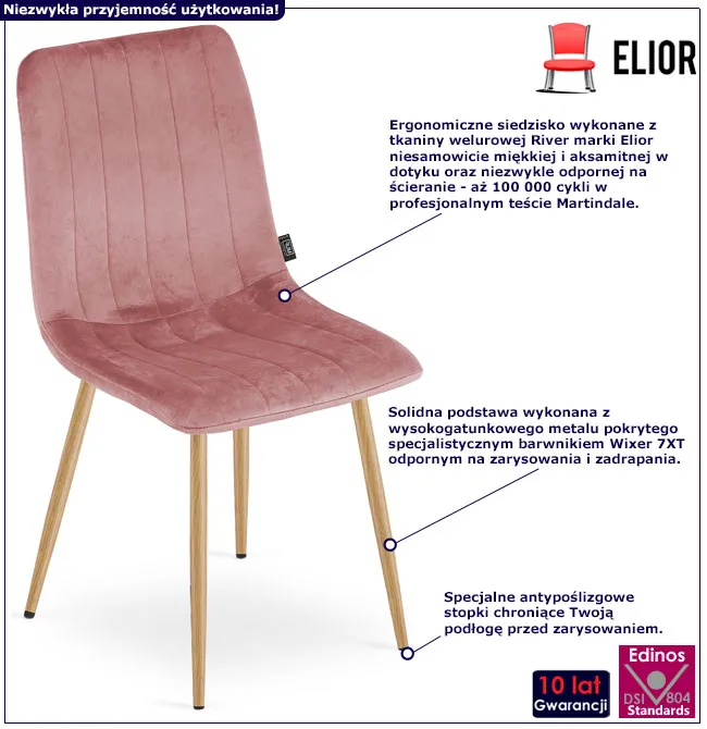 Infografika zestawu 4 sztuk różowych krzeseł do jadalni Hallker 3X