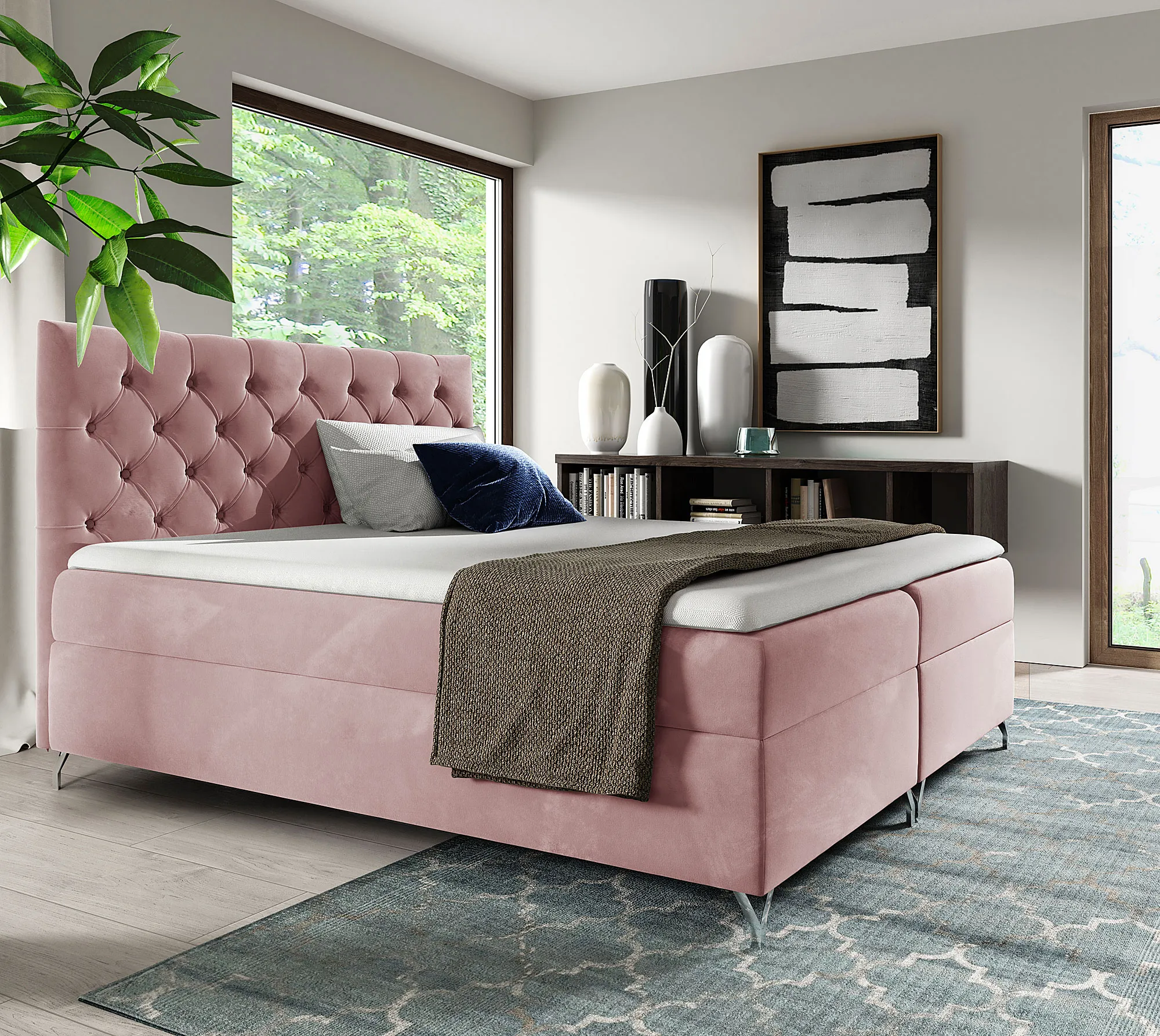 Dotyczy: Beżowe tapicerowane welurem łóżko 5 rozmiarów - Lunavello 4X