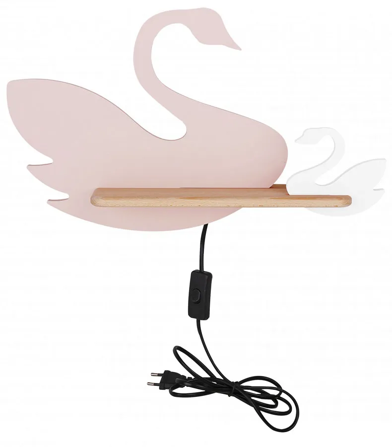 Różowo-biała lampka dziecięca łabędzie z przewodem - K038-Rosam