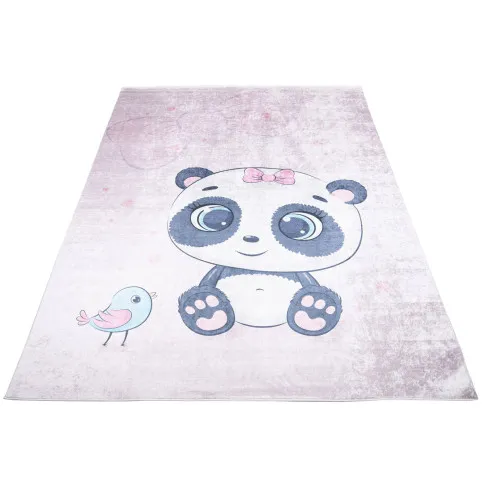 Różowy dywan dziecięcy skandynawski z małą pandą - Portix 3X
