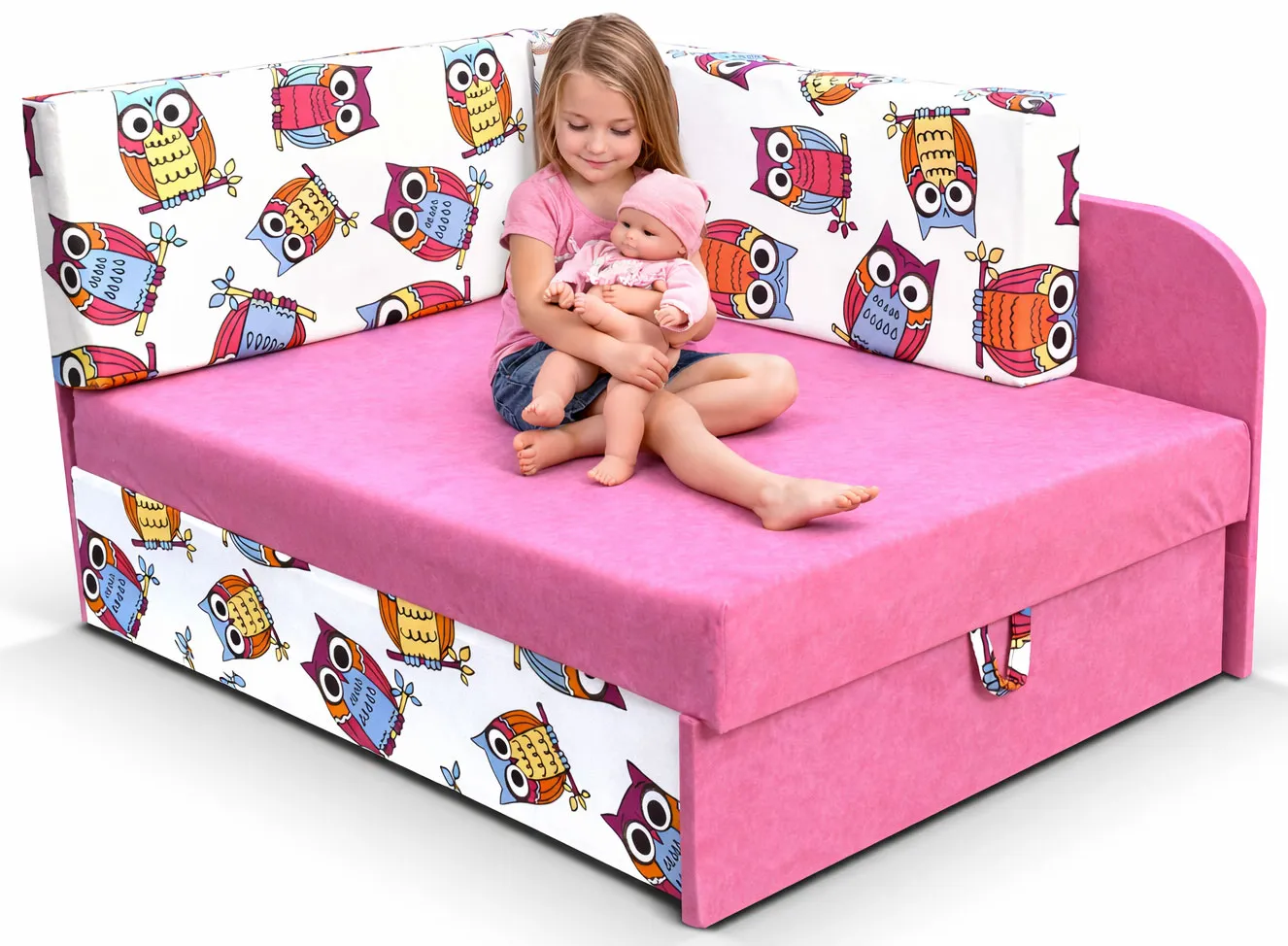 Różowy młodzieżowy rozkładany tapczan w sowy - Paster 9X