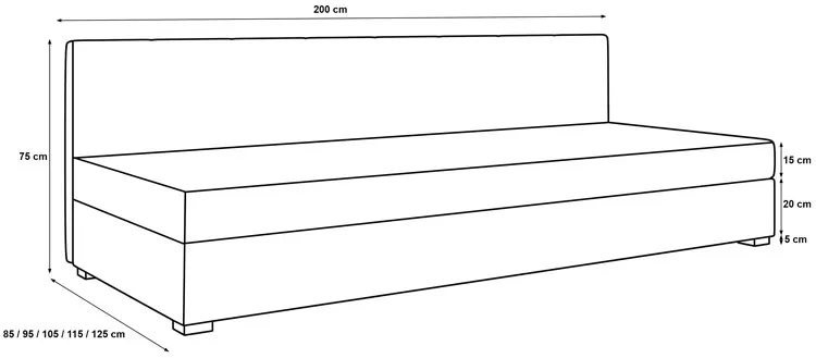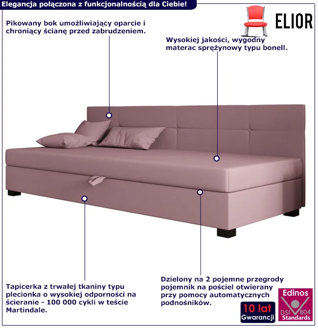 Dotyczy: Czarny tapczan z pikowanym oparciem i pojemnikiem Erlo - 5 rozmiarów