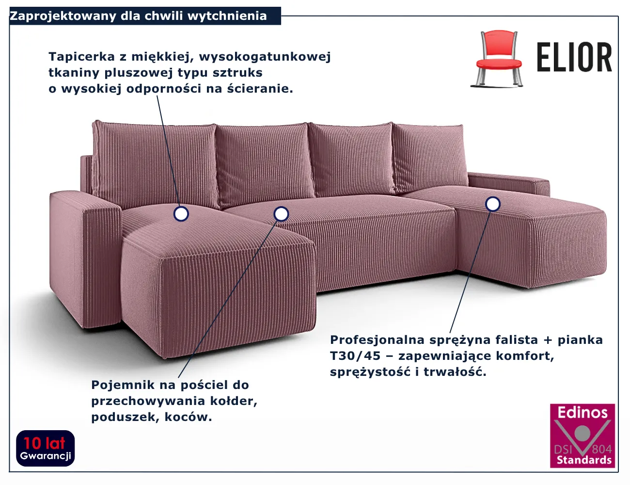 Dotyczy: Beżowy sztruksowy narożnik rozkładany z pojemnikiem - Meltix 4X