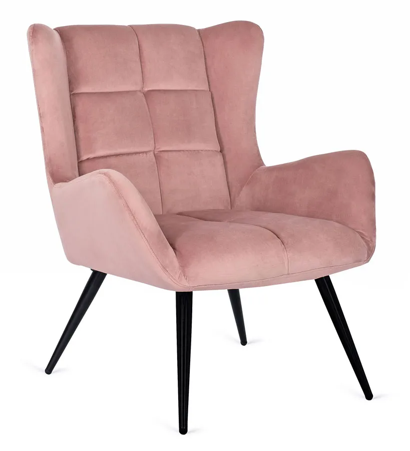 Różowy welurowy fotel do salonu Drefo