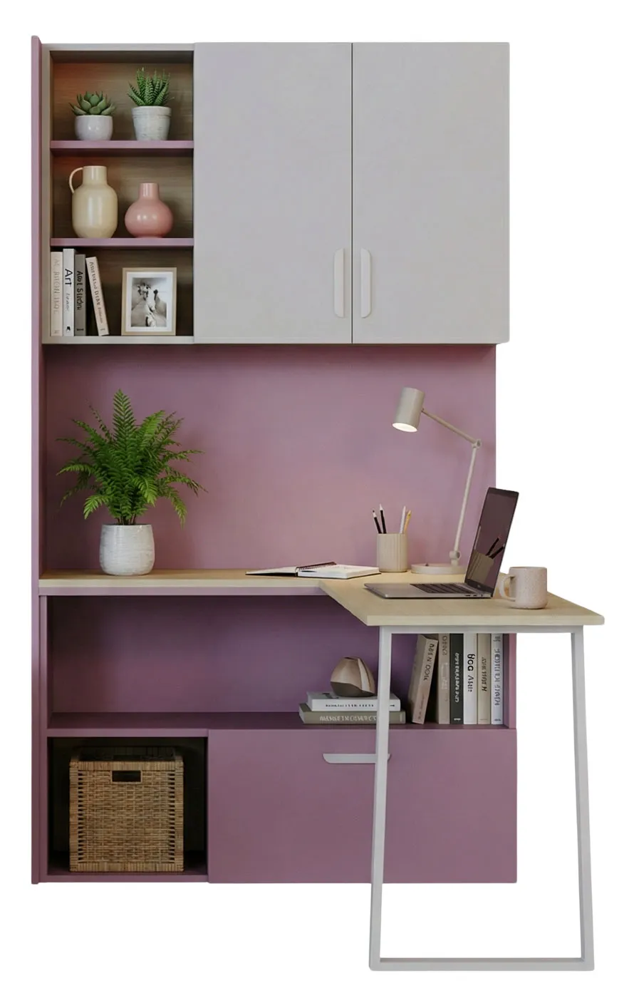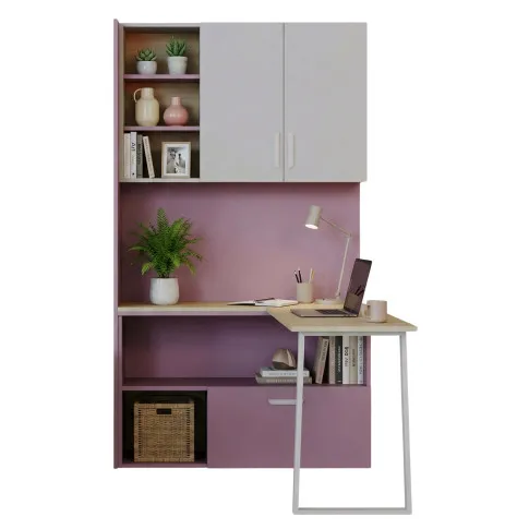 Regał z biurkiem kaszmir + róż Zimi 6X E54848