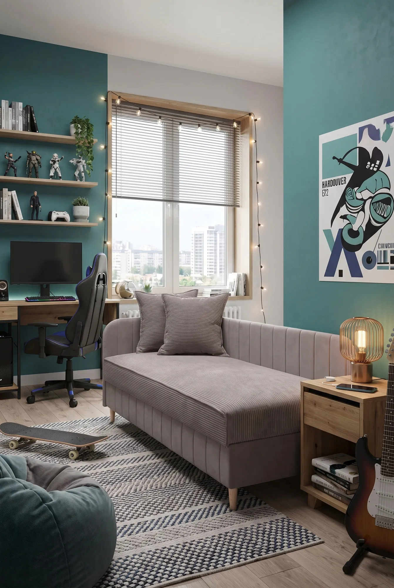 Dotyczy: Niebieski tapicerowany tapczan z pojemnikiem - Netis