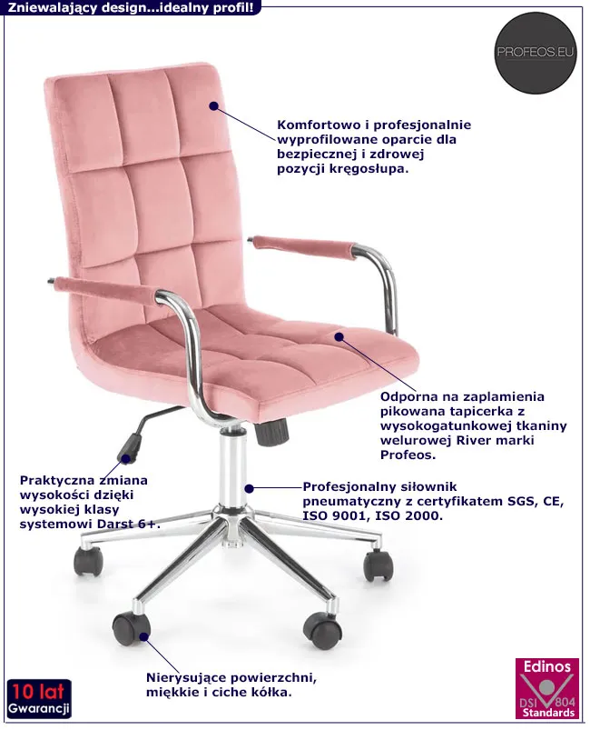 Dotyczy: Różowy obrotowy fotel dla dziewczynki - Petuli 2X