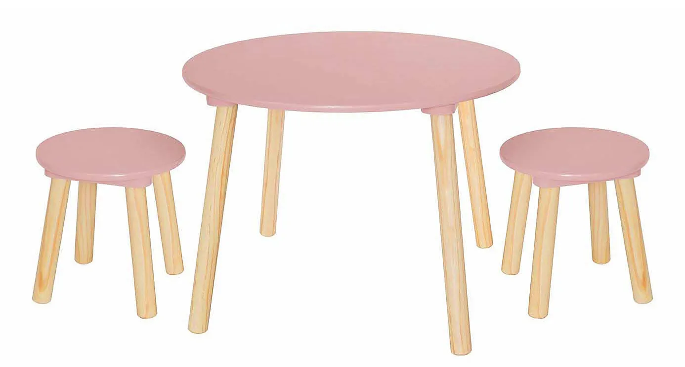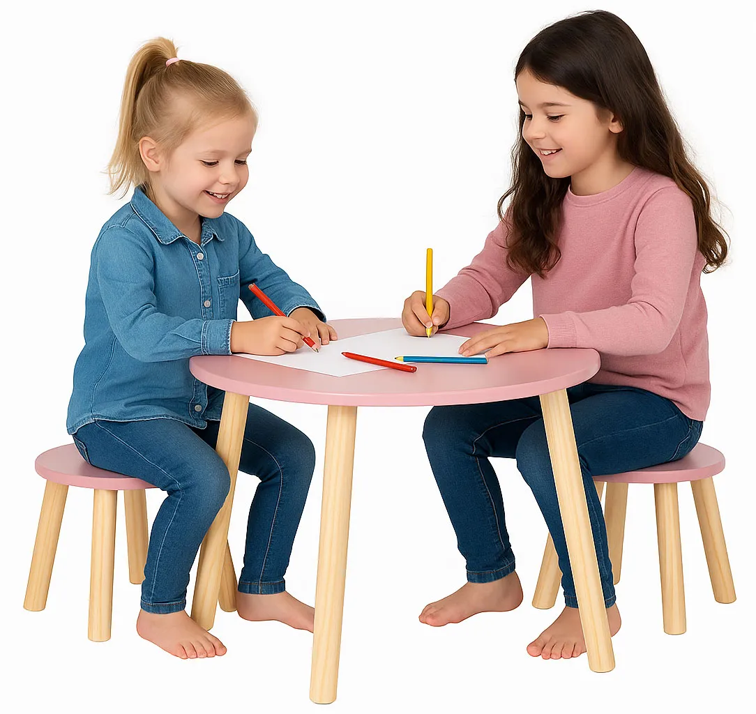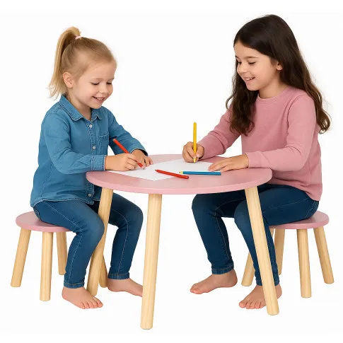 Zestaw wygląda bardzo uroczo, a różowy kolor świetnie pasuje do pokoju dziecka. Stolik i taborety są lekkie, a jednocześnie stabilne, dzięki czemu łatwo je przestawiać. Całość prezentuje się estetycznie i tworzy wygodne miejsce do rysowania oraz zabawy.