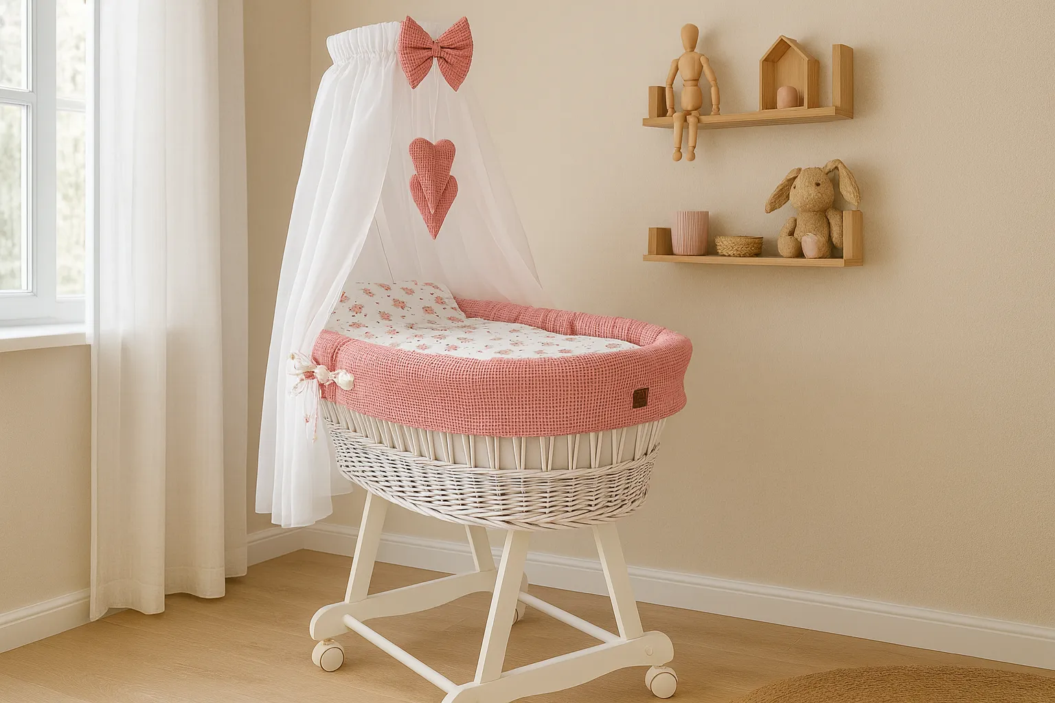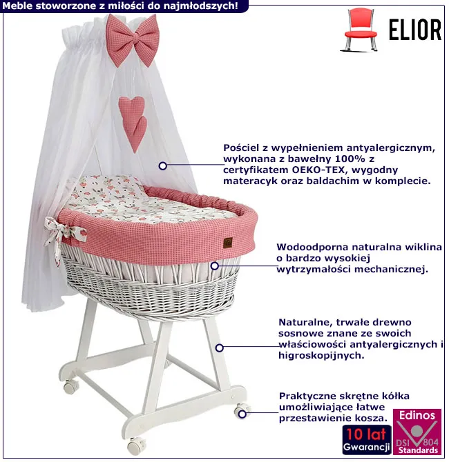 Dotyczy: Biały komplet łóżeczko kosz Mojżesza z baldachimem - Notiso 6X