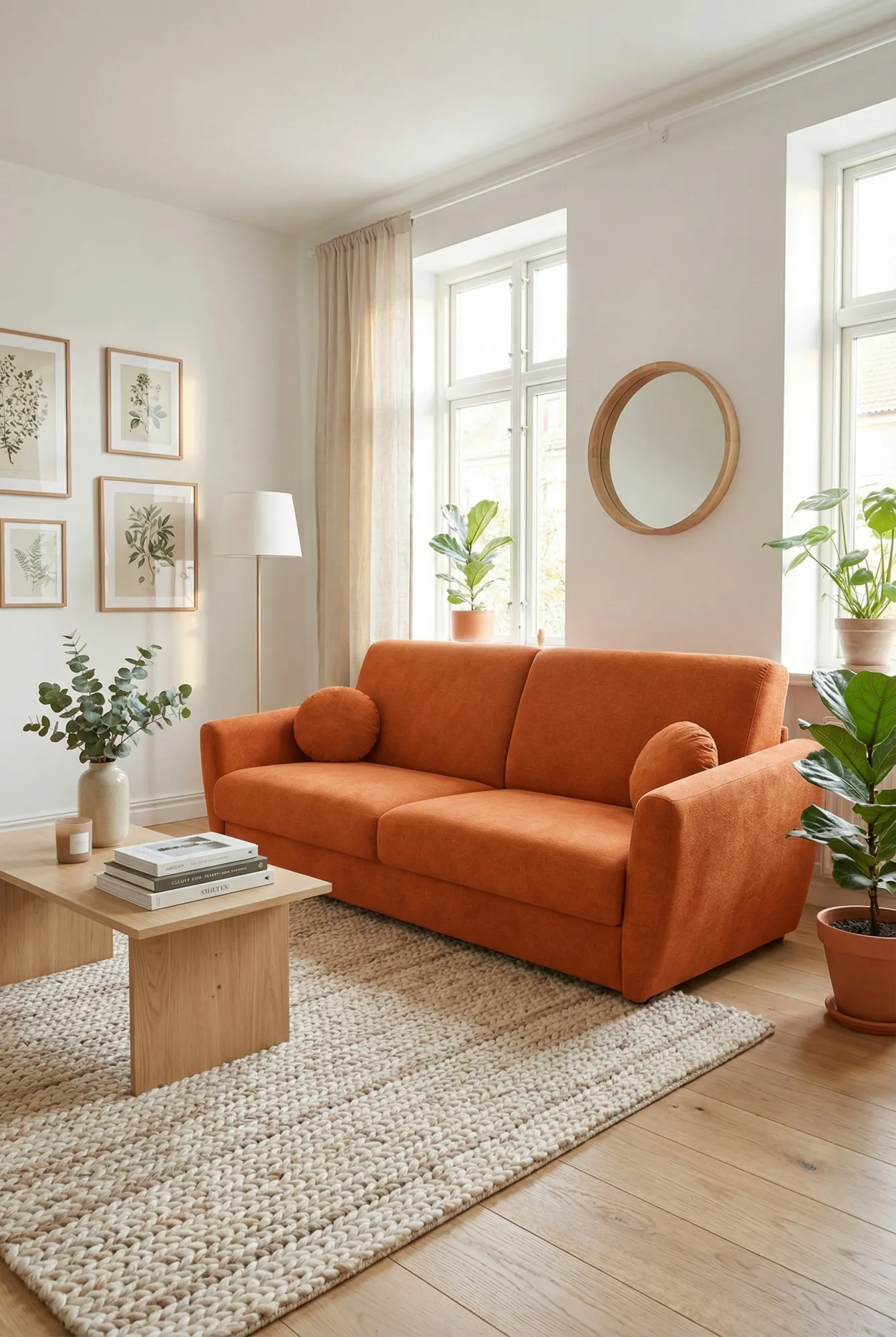 Wykorzystanie rudej wersalki Zafisa w nowoczesnym salonie