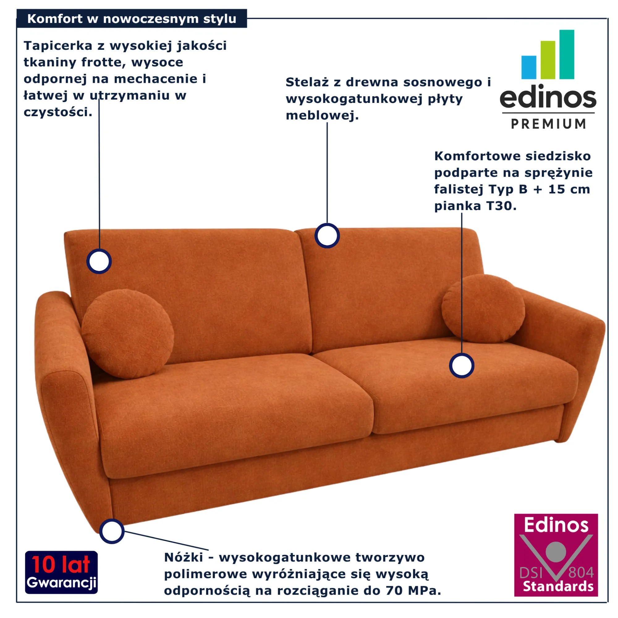 Wybierając wersalkę Zafisa marki Edinos Premium, inwestujesz w komfort, który towarzyszy Ci każdego dnia. To mebel stworzony z myślą o funkcjonalności i estetyce, dzięki czemu świetnie sprawdzi się w różnych przestrzeniach. Przemyślana konstrukcja oraz staranne wykonanie gwarantują długotrwałe użytkowanie bez kompromisów. Zafisa to połączenie wygody, stylu i praktyczności, które docenisz od pierwszego użycia. Zainwestuj w nią już dziś w cenie 1758 zł i stwórz w swoim domu przestrzeń pełną relaksu!