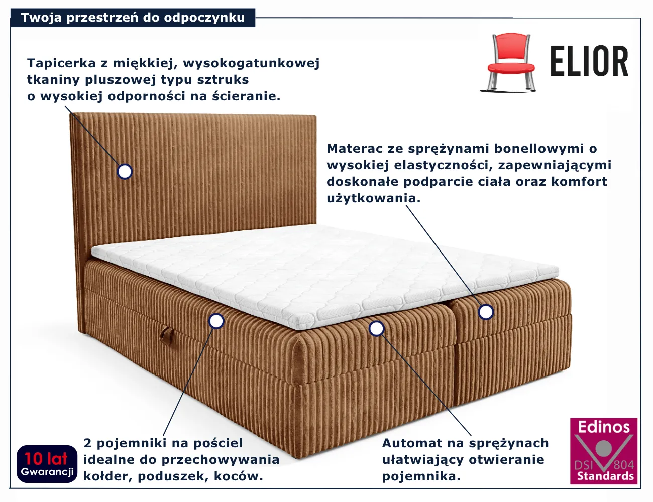 Wieczór to moment, w którym możesz w końcu zwolnić tempo, otulić się miękkością i cieszyć się spokojem. Łóżko Masseno marki Elior zostało zaprojektowane właśnie z myślą o tym, by każdy Twój sen był regenerujący, a każda noc – wyjątkowo komfortowa. Jego nowoczesna forma łączy w sobie prostotę i wyrafinowanie, dzięki czemu idealnie wpasuje się zarówno w minimalistyczne, jak i eleganckie wnętrza inspirowane naturą. Smukły zagłówek o przyjemnej strukturze sztruksu oraz harmonijne proporcje konstrukcji sprawiają, że Masseno staje się sercem sypialni – meblem, który nie tylko zachwyca wyglądem, ale przede wszystkim dba o codzienny komfort.
