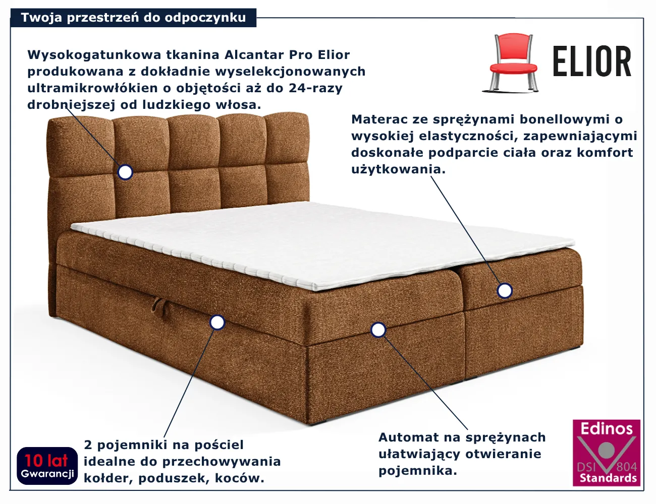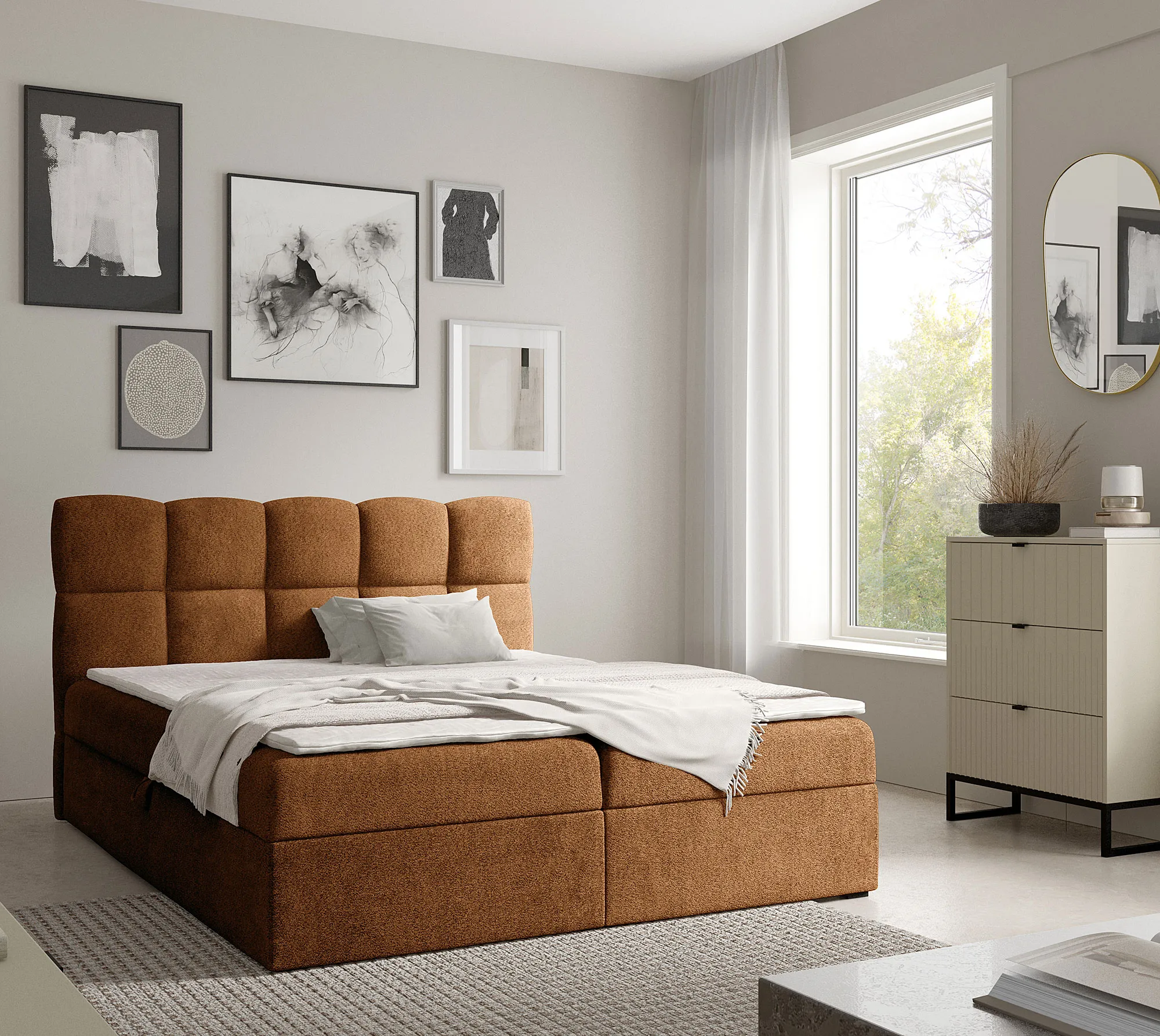 Rude łóżko tapicerowane z pojemnikiem 5 rozmiarów - Massilo