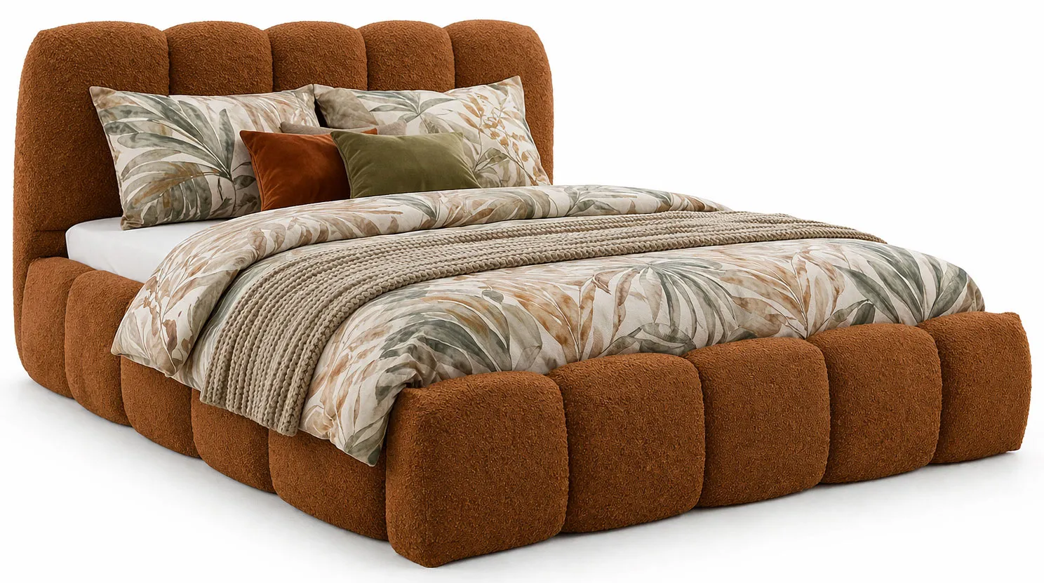 Ta tkanina typu boucle jest ge-nial-na i nadaje wyjątkowego wyglądu! Łóżko naprawdę wygląda jak z mega wysokiej półki cenowej. Dodatkowo jest stabilne, wygodne i po prostu dobrze wykonane. Jestem bardzo zadowolona.