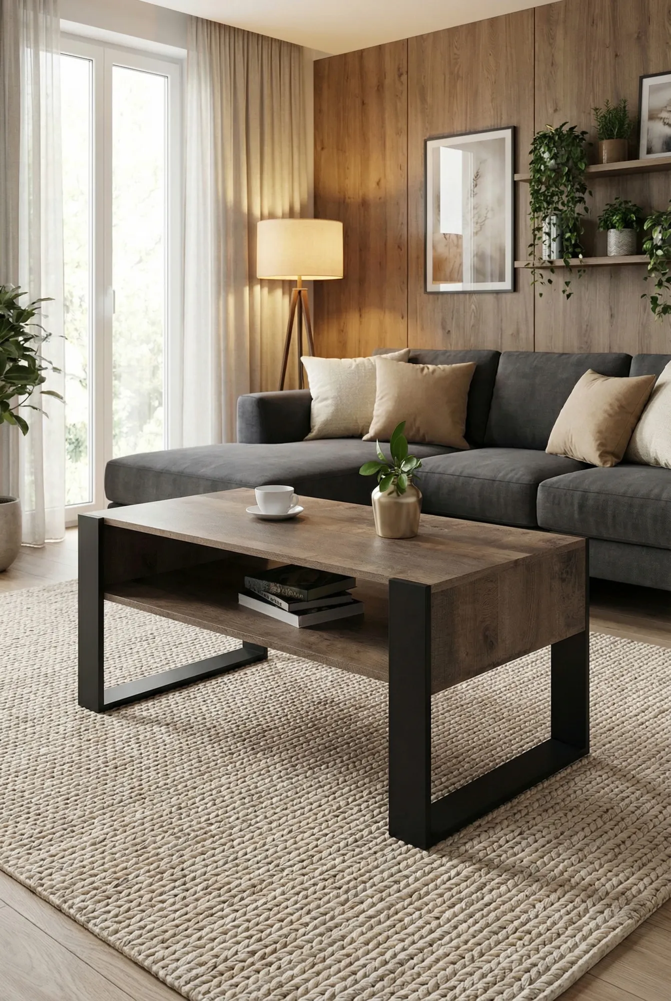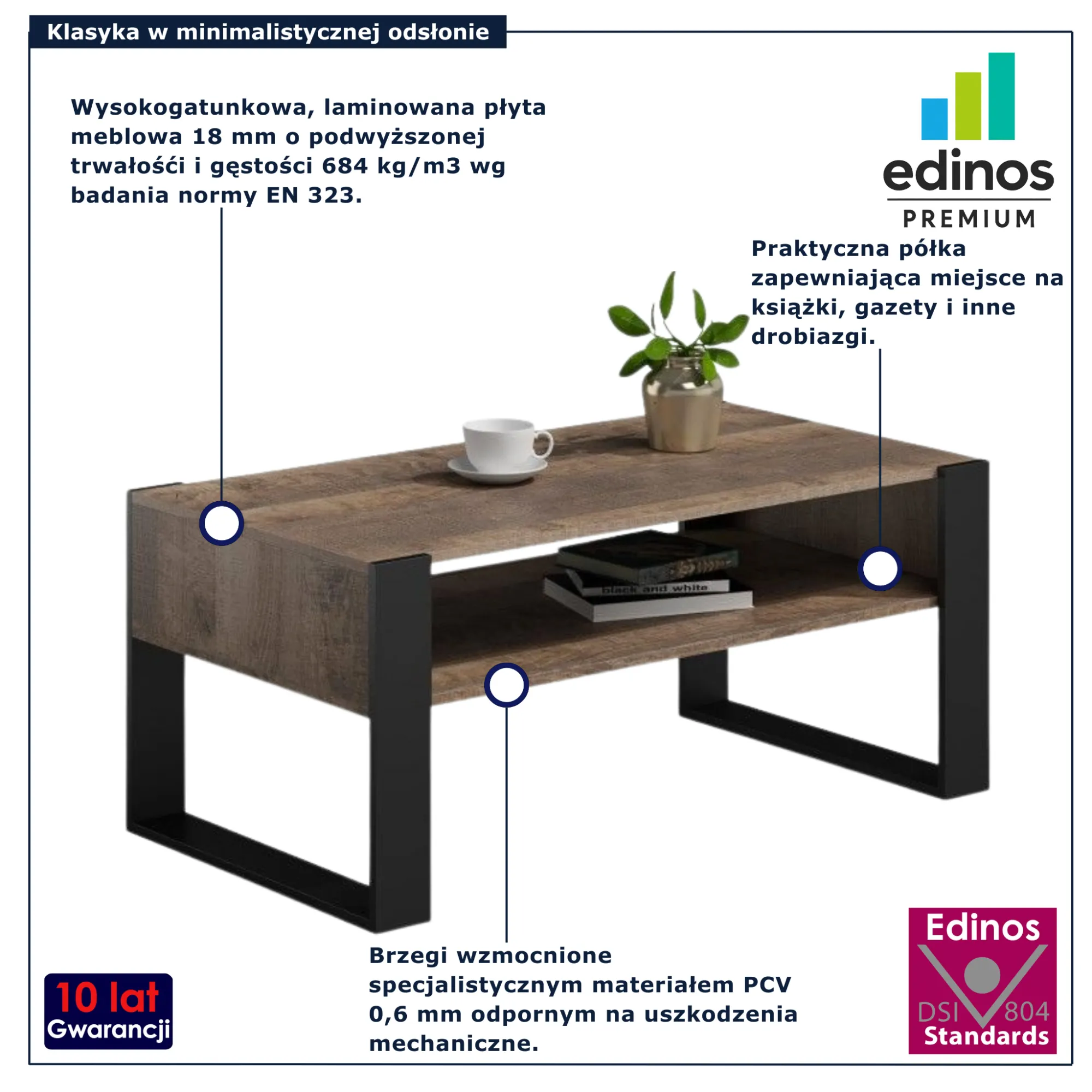 Dotyczy: Ława z półką do salonu dąb artisan + czarny - Bracio 3X