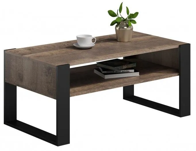 Dotyczy: Prostokątna ława z półką dąb wotan + czarny - Bracio 3X