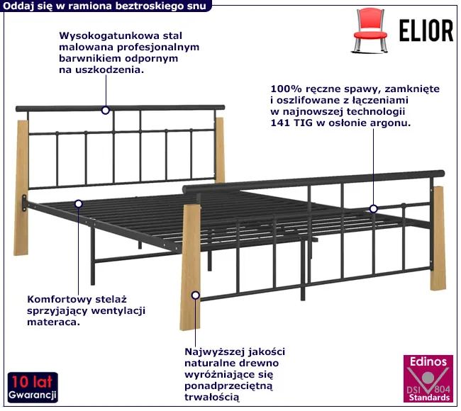 • Kolor: czarny + ciemny dąb. W naszej ofercie posiadamy także inne łóżka metalowe.  Kliknij i stwórz swój wyjątkowy zestaw mebli.