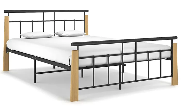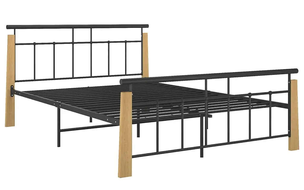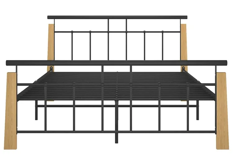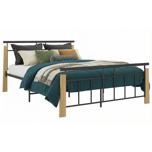 Rustykalne metalowe łóżko czarny + jasny dąb 140x200 cm - Nelo