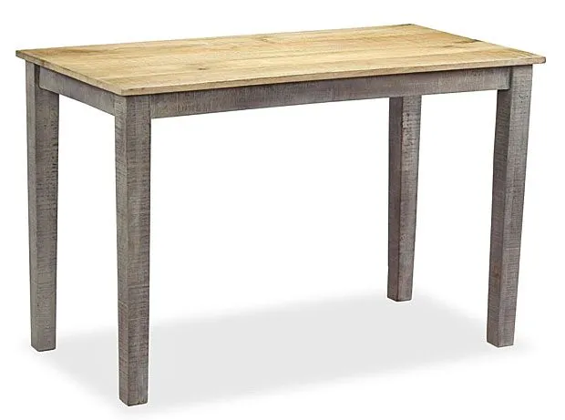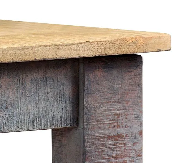 Stół Warlox marki Elior emanuje wyjątkowym urokiem łączącym nostalgię z domową wygodą ciepłem i echem wspólnych rozmów przy stole. Jego popielaty odcień podszyty wieloma bardziej kolorowymi, subtelnymi podtonami przebijającymi gdzieniegdzie drobnymi paskami sprawia, że jest absolutnie nie do podrobienia. Jasny blat przełamuje nieco ten artystyczny wyraz, kojąc go swojskim, kojarzącym się ze złotawym światłem kuchni drewnem mango. Jest ono cenione choćby przez stolarzy, ze względu na wyjątkowy, szlachetny odcień,  przyciągającą wzrok naturalnie zróżnicowaną, gruboziarnistą strukturę oraz doskonałą odporność na wilgoć i wodę.