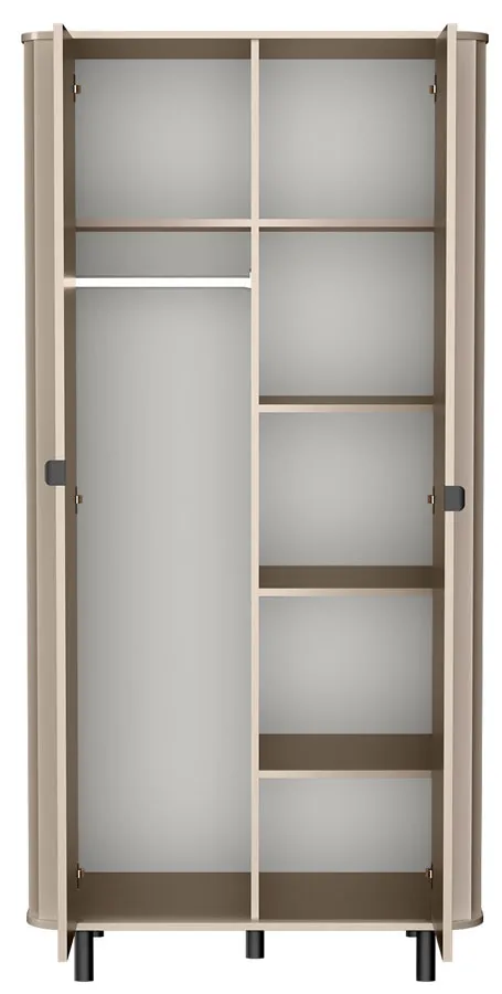 Dwudrzwiowa ryflowana szafa na ubrania na nóżkach Egesio 10X glina