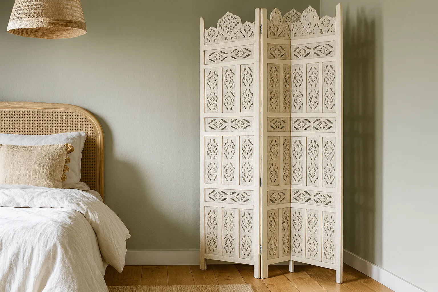 Elegancja i funkcjonalność w jednym rzeźbionym parawanie: