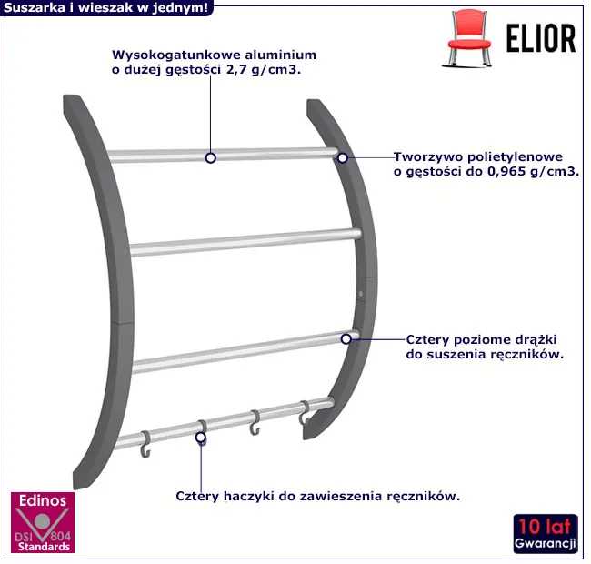 Wyobrażasz sobie łazienkę bez żadnego wieszaka? W tym szczególnym pomieszczeniu to raczej niemożliwe. Bo jak i gdzie trzymalibyśmy ręczniki? Świeżo wyprane w szafce, brudne w koszu. Ale co z tymi wilgotnymi i używanymi aktualnie? Musisz zapewnić im miejsce i odpowiednią cyrkulację. Świetnym pomysłem będzie nowoczesna suszarka z haczykami Izex marki Elior!