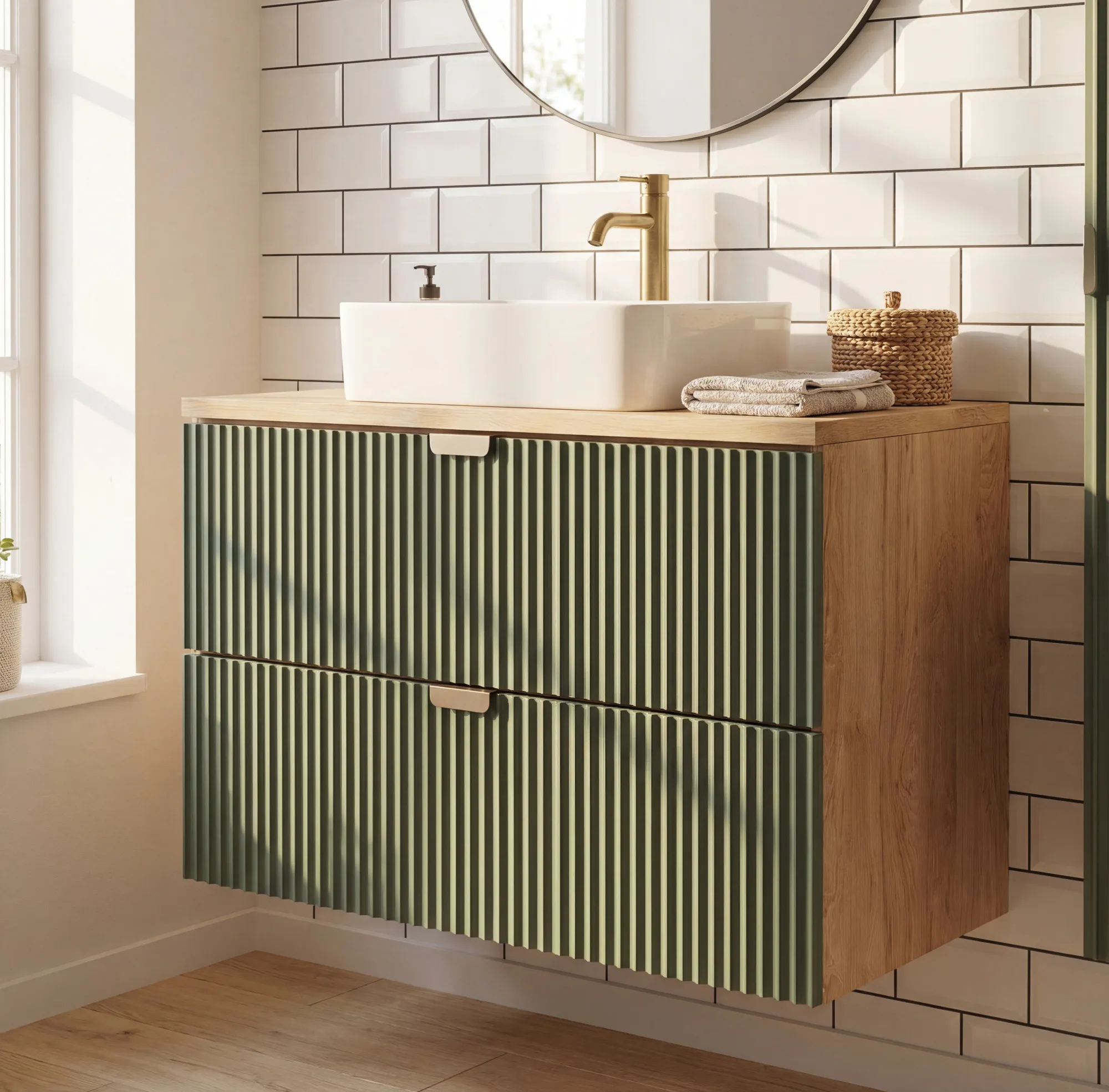 Łazienka z wykorzystaniem szałwiowej szafki Enda 3X
