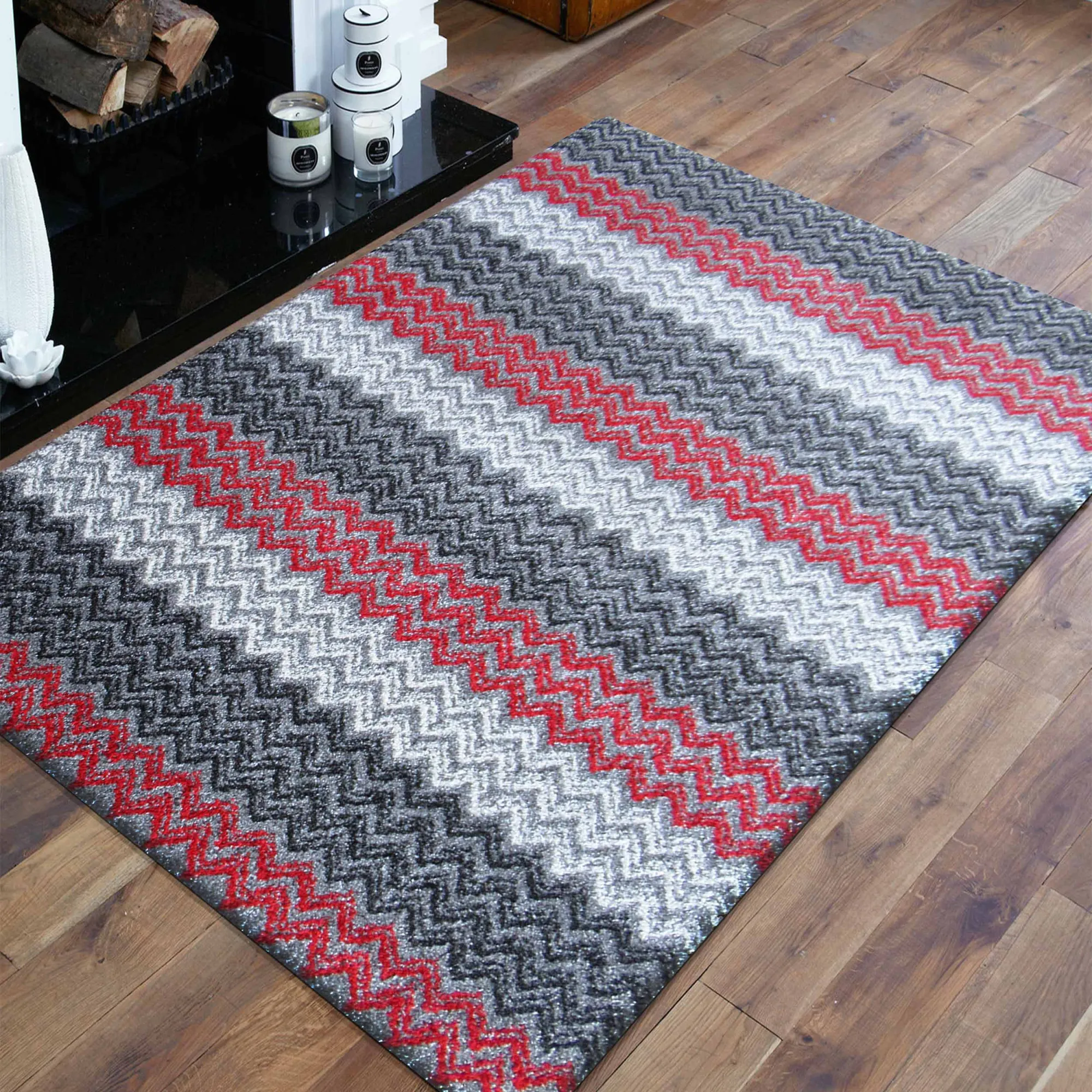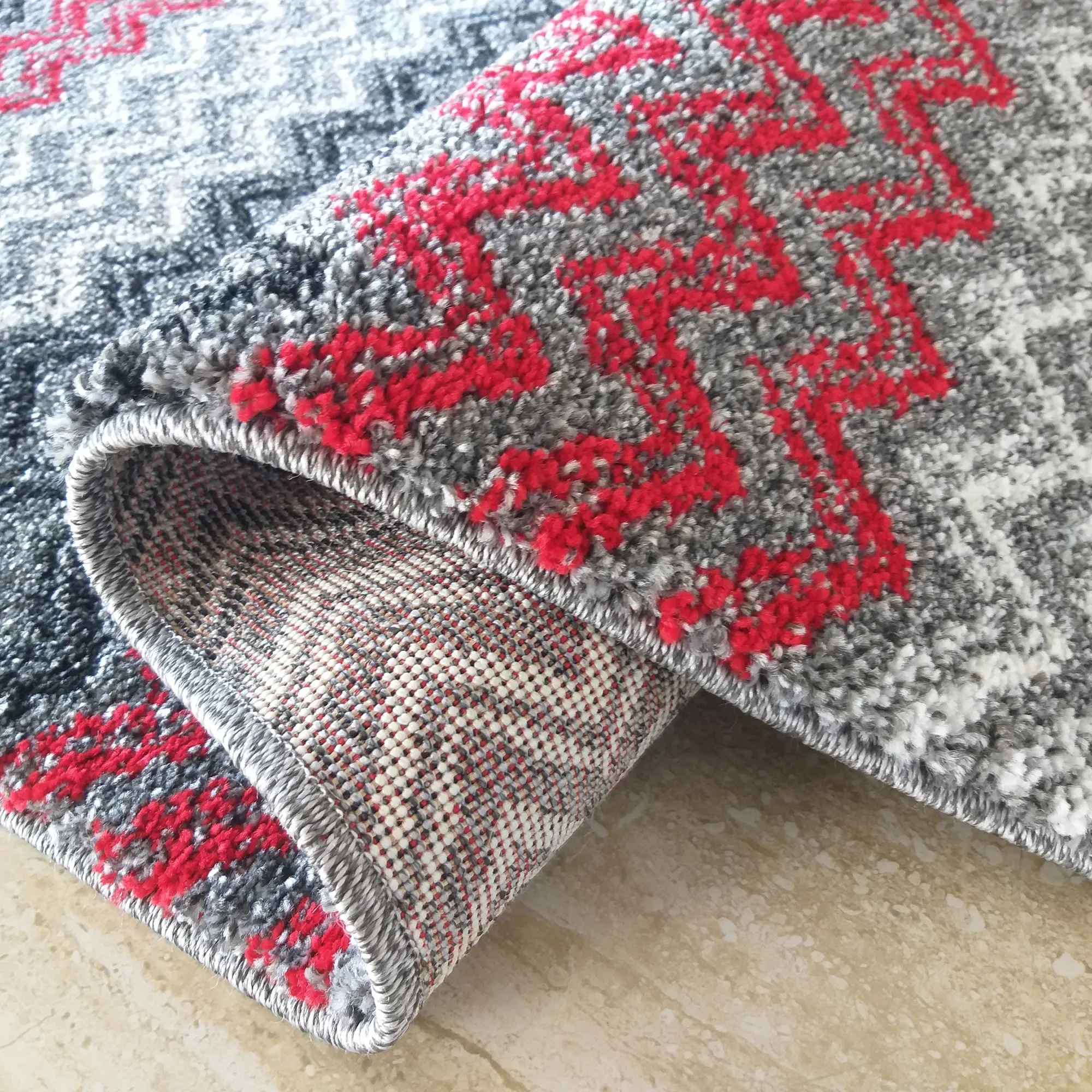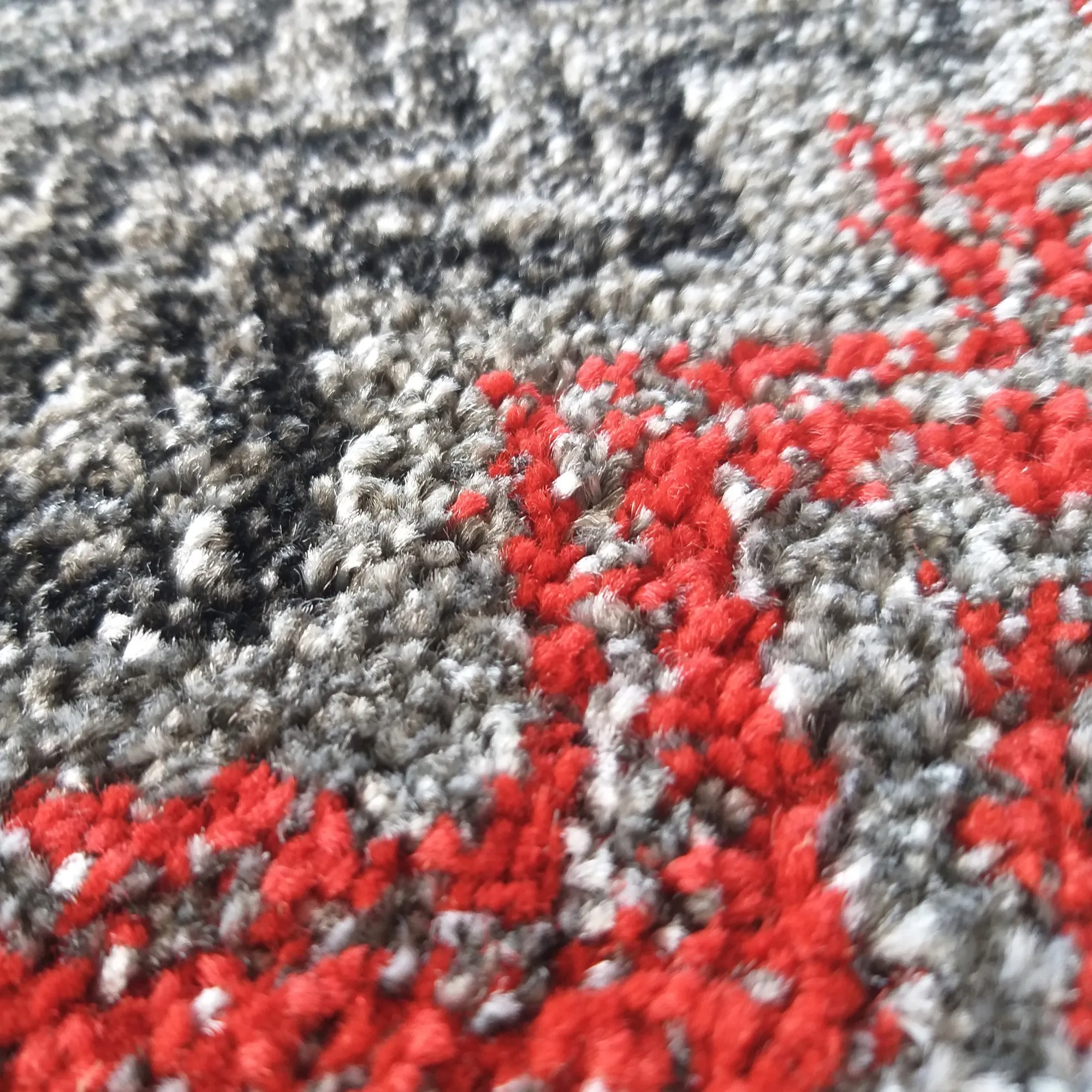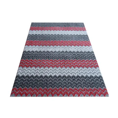 Kolekcja dywanów Rossa nawiązuje swoją stylistyką do stylu skandynawskiego. Szaro-czerwony dywan z tej serii jest dla ludzi zdecydowanych i nie bojących się odważnych i artystycznych wzorów. Przypadnie do gustu każdemu, kto szuka niebanalnych rozwiązań. Wykonany z trzy kolorowej przędzy HEAT-SET FRISE, dzięki czemu dywan jest odporny na zabrudzenia i odkształcenia. Różne odcienie szarości połączone z czerwienią doskonale podkreślają nietuzinkowe wzornictwo.